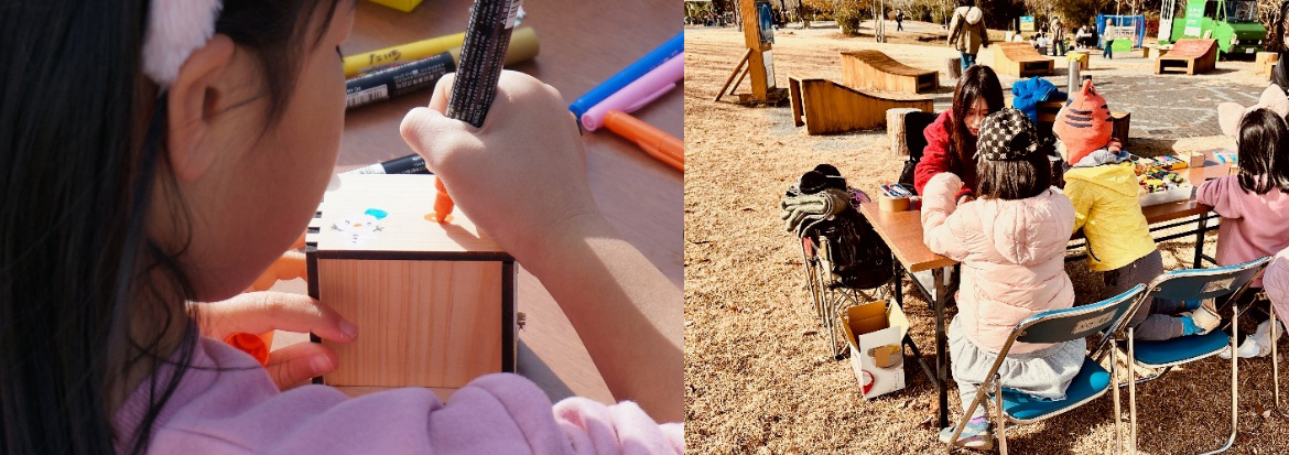 桝作りには、この時季ピッタリの雪だるまやサンタクロースなどを真剣な表情で描く子どもたちが集まり、「楽しい!」「かわいくできた!」などの声が聞かれました。