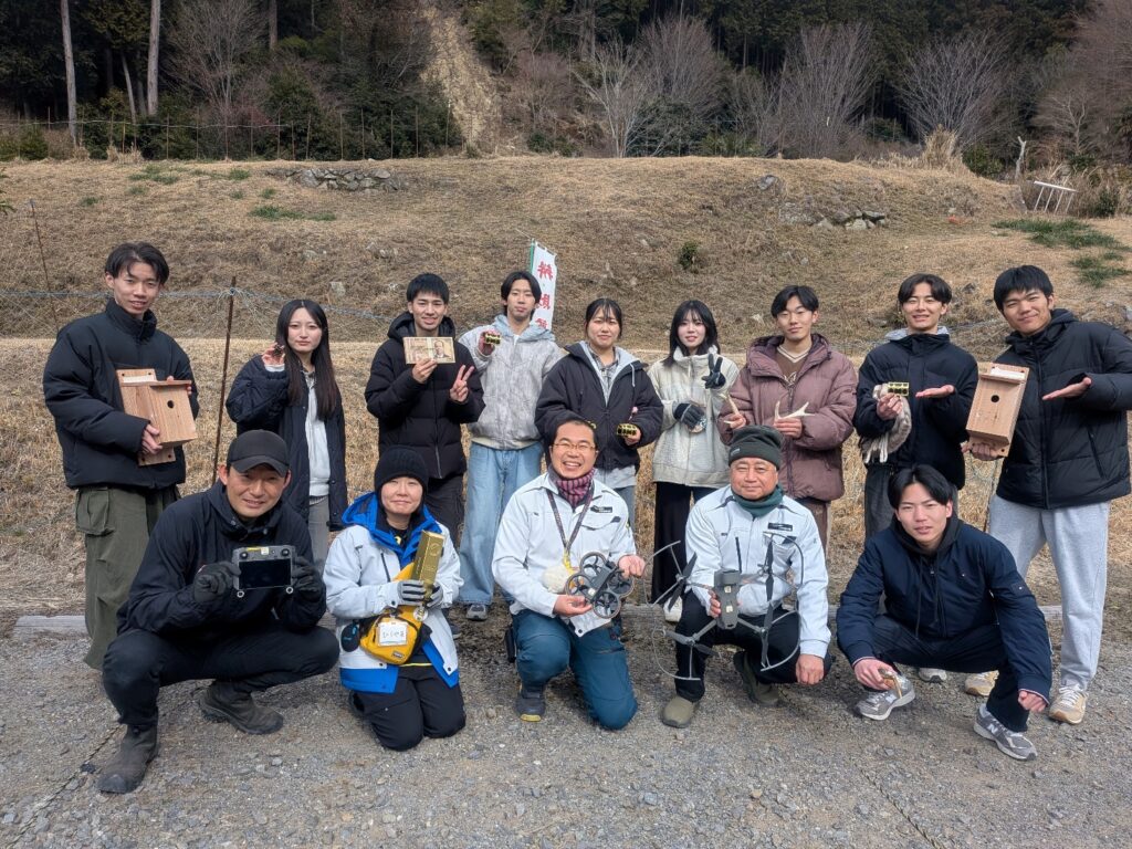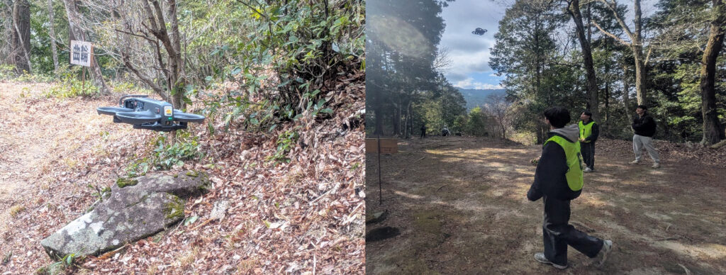 「あいちの山里関係人口拡大事業」で実施している「あいちの山里 社会実装大作戦!」において、名古屋学院大学の学生10人が、2026年2月1日(日)岡崎・額田地区の日近城跡でドローンを使った体験イベントのテストを行いました。